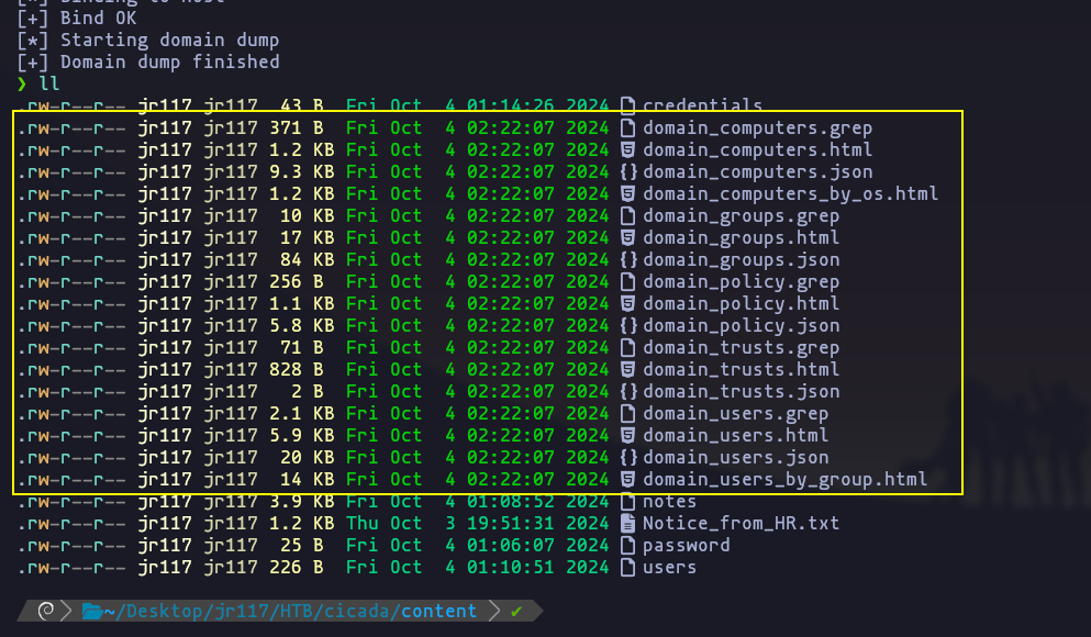 ldapdomaindump --user cicada\\David.Orelious --password 'aRt$Lp#7t*VQ!3' 10.10.11.35